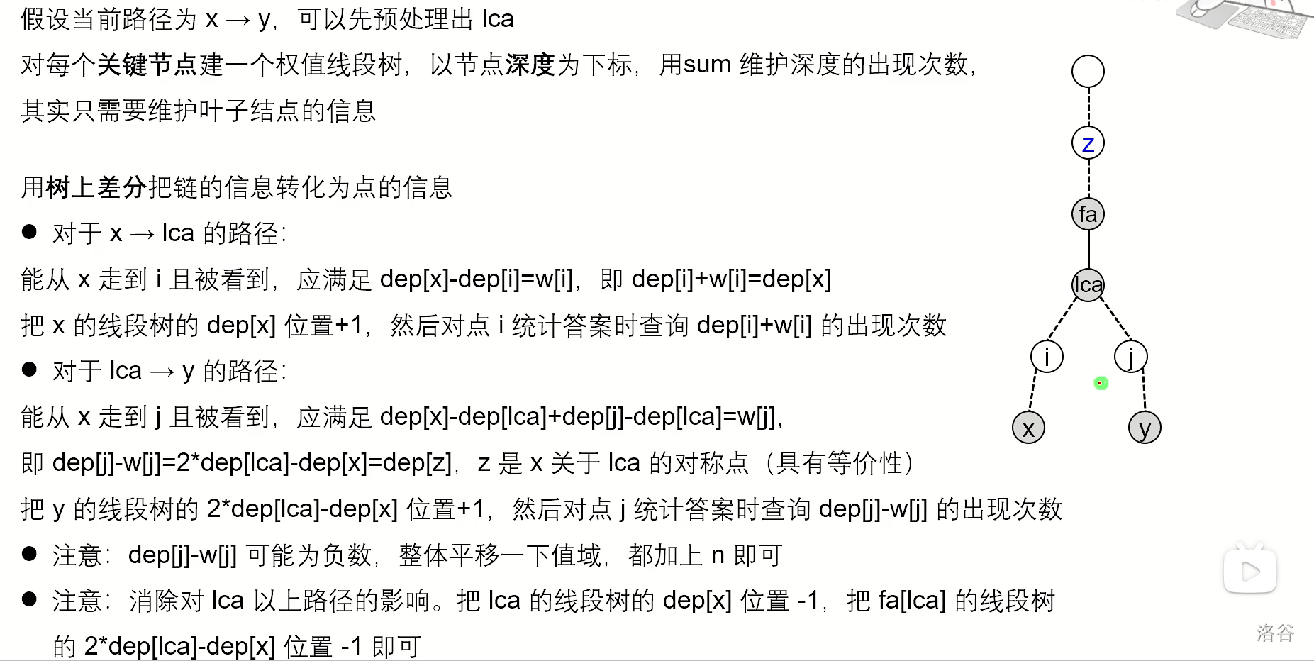 挺难的这个题,基本上说是没思路。简单来说,给定一棵树,告诉你第 $i$ 个玩家的出发点和终点,这个玩家会沿着树上最短路移动,每秒移动一条边的距离。给定每个结点的观测时间,如果在观测时间有人经过,输出每个点经过的人数。